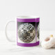 Three silver mirror balls wrap around this cool and unique disco themed mug. Shown is a white mug with a blue border and purple accents, but many styles and colors of mugs are available. To change the blue background color and groovy purple border just click on "Customize it" and then click on "edit" and then "background" to change them to your taste. Get ready to party! Makes a fun gift!