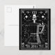 Grunge tarot card design for coffee lovers! The Moka Pot. White and black illustrations with a moka pot coffee maker, coffee beans, and skull in a top hat.