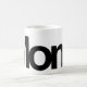 A minimalist white mug with black Helvetica type: Mom.