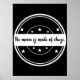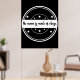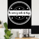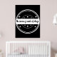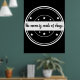 This playful black and white design features the whimsical phrase “The moon is made of cheese” in a flowing script font. Surrounded by circular borders and scattered stars, it combines a cosmic theme with lighthearted humor. The simple monochrome palette enhances its quirky charm, making it perfect for those who enjoy witty sayings with a celestial twist.