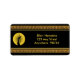 2”l x 3.75”w black address label with an image of an Art Deco female silhouetted in the bright yellow light of a full moon. Gold Greek key and gold ribbon borders.