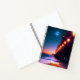Personalized bullet journal for beach lovers features a pier with lit lampposts and a glowing full moon at dusk. Design created using AI software. Paper type can be changed.