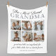 Modern mothers day family picture blanket featuring the cute saying "the most loved grandma", 6 photos of the grandkids, their names, and the caption "grandmas hold our tiny hands for just a little while, but our hearts forever".