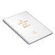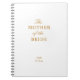 Personalized The Mother of the Bride spiral notebook. Classic script and block text with bride and groom initials and wedding date text field. Gold text on a black background.