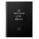 Personalized The Mother of the Bride spiral notebook. Classic script and block text with bride and groom initials and wedding date text field. White text on a black background.