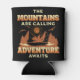Grunge retro style outdoor illustration with " The mountains are calling, adventure awaits" text design and mountain scene decoration