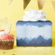 Mountain silhouettes and reflections in shades of blue, with customizable text. Sample text is based on a quote by naturalist John Muir, and can be changed or deleted.