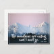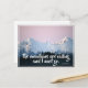 This postcard features a photograph of a snow-covered Alaskan mountain range at dusk with a beautiful pink-colored sky. The quote by John Muir, "the mountains are calling and I must go."