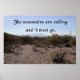 The Mountains are calling, and I must go. A quote by John Muir. Printed on a scene from the Arizona desert with mountains in the distance.