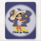 This image has a green Mexican guy wearing a sunbrero and playing a fiddle. A twilight sky, with stars is the backing for this cartoon character. A sandy desert is what this guy is standing on. This has an opaque with a featured edge as a frame on top of a blue backround. Cinco De Mayo was printed on the design. These mousepads are available in vertical or horizontal. Customize with a backround of a different color.