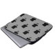 The sleeve is made of nice feeling material and seems very durable. I'm not sure how easy it'll be to clean, but the construction seems sound and the fabric is quick thick. I also like the double zipper. The printing is lovely and appears durable. The white on black contrast is nice, and the design very elegant.