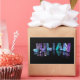 This image is a photograph of handmade letters, which change randomly, producing unique patterns and colors of light. The name Julian is reflected in still water, with floating foil hexagons. The letters look as if they're carved from crackled ice or crystal. If you can't find a name you want, please get in touch, and I'll put it on my list. Please see NamesInLights.co.uk for larger examples of the standard of photography on these products.