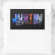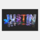 The Name Justin in 3D Lights (Photograph) Rectangular Sticker