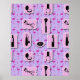 A whimsical pattern of makeup and other beauty accessories.