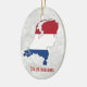 Display your love for the Netherlands this Christmas with this ornament featuring a map of the Netherlands filled in with the colors of the country's flag. The font and color of the text can be changed to fit your preference.