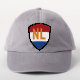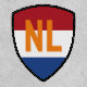 The flag of the Netherlands with the country abbreviation superimposed in orange.