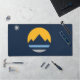 Desk Mat with the new flag of the city of Reno, Nevada; a dark blue flag with a yellow sun and blue mountains in the center