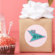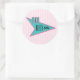 Round sticker with an image of a blue and pink 50s diner sign with the text “The Nifty 50s” on soft pink-on-pink stripes. See matching custom-cut vinyl sticker, confetti, favor bag, favor tag, gift bags, label and wrapping paper. See the entire Nifty 50s Sticker collection in the INVITES | Stickers & Labels section.