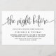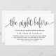 Let's celebrate the bride and groom before the wedding. Invite family and friends with this elegant rehearsal dinner invitation. It features whimsical calligraphy with classic typography. Personalize by adding names, date, address and other details. This script The Night Before invitation is perfect for any wedding season and theme.