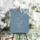 The night before, wedding rehearsal sign, with white simple script and dusty blue watercolor floral wedding theme. The text and colors can be edited.