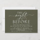 Modern Romantic Calligraphy, White Script, Olive Sage Green Background, Wedding Rehearsal Dinner invitation card (with card title: the night before). It is perfect for your wedding rehearsal dinner celebration party, before your best day. Add your details in matching black font / lettering.