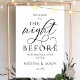 Welcome to the night before our happily ever after. Our modern elegant welcome board sets the perfect tone for your rehearsal dinner, blending sophistication with a touch of contemporary flair. This beautifully designed board features sleek typography script and delicate accents, making it a stunning focal point for your event. It's not just a sign; it's a keepsake that will remind you of the joy and excitement leading up to your special day. Easy to display and sure to impress, this welcome board, in black and white theme, is the ideal addition to your celebration, ensuring your guests feel warmly welcomed and cherished.