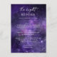 Set the scene for a magical evening with this elegant galaxy rehearsal dinner menu, designed especially for “the night before” your big day. The rich purple sky is softly illuminated with stars and cosmic tones, creating a dreamy celestial atmosphere. Stylish modern script combined with classic text gives the layout a refined and balanced look - perfect for an intimate dinner with family and friends. Ideal for celestial, galaxy, or starry night wedding themes. This rehearsal dinner menu brings a sense of wonder and unity to your pre wedding celebration. It beautifully complements outdoor gatherings, candlelit dinners, or beach events under the stars.