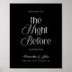 Welcome guests in timeless style with The Night Before Modern Elegant Black and White Rehearsal Dinner Welcome Sign. Designed with a refined monochrome palette and sophisticated typography, this rehearsal dinner sign sets the tone for an elevated and memorable pre-wedding celebration.