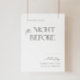 This beautifully designed 'The Night Before' welcome sign sets the tone for an unforgettable rehearsal dinner. Designed with a minimalist esthetic, it features exquisite calligraphy and bold typography that effortlessly captures the essence of your special moment. The simple yet striking design is perfect for couples who appreciate the beauty in subtlety. It serves as a sophisticated welcome to your guests, hinting at the beautiful journey that begins the next day. Ideal for creating an ambiance of refined romance, this sign is not just a piece of decor, but a cherished keepsake of the love and joy shared on the eve of your wedding.
