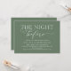 Announce your happily ever after in style with our modern forest sage green theme design (The Night Before) wedding rehearsal celebration invitation card. It is ideal for couples who have decided to celebrate the night before their big day. With its sophisticated yet playful design, this invitation is sure to set the tone for an unforgettable event. The invitation card features modern romantic script design, adding a touch of timeless elegance to your celebration. Designed by TeeshaDerrick