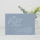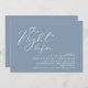 Announce your happily ever after in style with our modern aesthetic dusty blue theme design (The Night Before) wedding rehearsal celebration invitation card. It is ideal for couples who have decided to celebrate the night before their big day. With its sophisticated yet playful design, this invitation is sure to set the tone for an unforgettable event. The invitation card features modern romantic script design, adding a touch of timeless elegance to your celebration. Designed by TeeshaDerrick