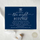 Modern Romantic Calligraphy, navy blue Scheme, mistletoe with wedding bells, Wedding Rehearsal Dinner invitation card (with card title: 'Twas the night before). It is perfect for your wedding rehearsal dinner celebration party, before your best day. Add your details in matching black font / lettering.
