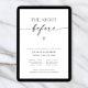 You can pick to download your The Night Before Wedding Rehearsal Dinner Invitation from 4 file types: PNG, JPG, Standard PDF, and Print PDF. These 4 file formats have been selected so they cover all your inviting needs. PNG and JPG are great for sending your invitation digitally and PDF and Print PDF are great if you want to print your invitation yourself.