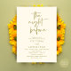 Announce your happily ever after in style with our modern yellow gold theme design (The Night Before) wedding rehearsal celebration invitation card. It is ideal for couples who have decided to celebrate the night before their big day. With its sophisticated yet playful design, this invitation is sure to set the tone for an unforgettable event. The invitation card features modern romantic script design, adding a touch of timeless elegance to your celebration.