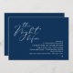 Announce your happily ever after in modern romantic style with our navy blue theme design (The Night Before) wedding rehearsal celebration invitation card. It is ideal for couples who have decided to celebrate the night before their big day. With its sophisticated yet playful design, this invitation is sure to set the tone for an unforgettable event. The invitation card features modern romantic script design, adding a touch of timeless elegance to your celebration. Designed by TeeshaDerrick