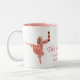 The mug is lovely! I had a florist do an arrangement in it to present to a very special dancer. It is a beautiful keepsake of a memorable performance. The personalized printing was centered perfectly, sized to compliment the printing that came with the mug. The colors weren’t an exact match, but were compatible. No ink runs or smears, very legible.