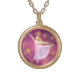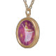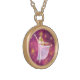 I chose gold plated so that the metal would not react with my skin oils and perspiration. But, I changed the necklace from the gold plated one to a sterling silver. My skin cells will tarnish the silver. But it will not look as bad if some portion of the gold plated necklace somehow became compromised. Zazzle did a find job turning the picture into a pendant for me. As you can see, the colors and the printing of the final product, match the preview. The picture I took is not very clear. But I am pleased with the product I received.