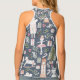 Women's All-Over Print Racerback Tank Top, White Piping, S