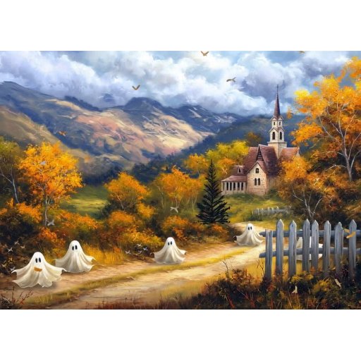 In the quiet heart of an autumn park, a gentle spirit finds a place to rest. This enchanting art print captures a lonely ghost sharing a bench with his glowing jack-o'-lantern companion, surrounded by the warm colors of fall. It's the perfect blend of spooky and sweet, ideal for adding a touch of magical, storybook charm to your Halloween decor. Let this friendly phantom bring the whimsical spirit of autumn into your home.