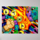 Fun bright artwork that really captures the mood I’m going for! Pop art with cyberpunk energy. A little sweet but also spicy. This art is the perfect size and vibe for our art gallery wall. The printing looks great, high quality with vibrant colors! I went with the semi-gloss finish, which adds a little extra shine and thickness to the print making it excellent for high-traffic areas like the staircase wall.