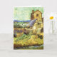 The Old Mill by Vincent van Gogh is a vintage fine art post impressionism architectural painting featuring a working mill with a couple walking in the foreground and fields in the distance.