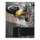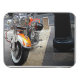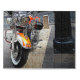 The orange motorcycle . Street view with a parking Harley in Budapest . Great for motor bikers /speed lovers . Original Photo by Alma Wad .You can add some text /logo / name etc .