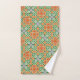 This set of abstract orange-inspired bath towels is the perfect way to add a pop of color to a plain white bathroom.