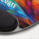 The plastic backing is nice and sturdy. The grippy pads underneath keep the mouse pad where I put it on my table. The pad the mouse sits on is cut well to fit the backing. The wrist pad is perfectly soft, supportive, and thick. I'm left-handed, and this mouse pad works just as well for me as it does for my right-handed friends. I'm the designer of HippieClecticHope products. I'm blown away by how well my intricate fractals turn out on the tangible items in the Zazzle Marketplace. This particular mouse pad ***appears*** like a 3D object... A mathematically-engineered rainbow black opal, inlaid under transparent fabric...