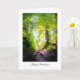 A great card showing a view of the last of a dark, steeply inclined path, rising to a sunny glade beyond. Late afternoon sun is flooding through the trees ahead and dappling the last of the path, warmly inviting you to make the final effort.