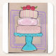 A delightful study in pattern and rhythm, this three-tier cake collage blends classic damask, playful stripes, and soft polka dots. Anchored by a vibrant teal cake stand, the pastel pinks and purples create a soft, inviting harmony.