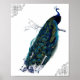 A breathtaking vintage peacock perched on a limb. Adding balance in two opposing corners are understated oriental fretwork elements.