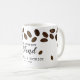 Trendy and unique coffee wedding favor mug designed with coffee beans . Personalize them with the bride and groom's names, using stylish typography for a custom touch. Create your own wedding favors with this unique gift, perfect for bridal showers and bridesmaid gifts. Order in bulk for your coffee-themed party favors!