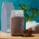 Premium coffee—available in ground or whole bean and a wide variety of roasts and blends—is a rich, flavorful wedding favor packaged in a dusty blue carton featuring “The Perfect Blend,” and your names and wedding date in timeless white serif typography.