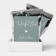 A perfect party favor for your rehearsal dinner, engagement party, or wedding, coffee packets feature white handwritten lettering on a dusty sage eucalyptus green background with a small heart illustration in the center. "The Perfect Blend" appears at the top, with your event name and date beneath.